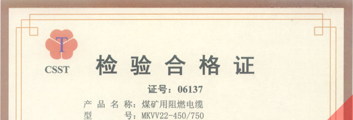 國家采煤機械質(zhì)量監(jiān)督檢驗中心檢驗合格證--煤礦用阻燃電纜(MKVV22-450/750)