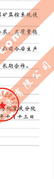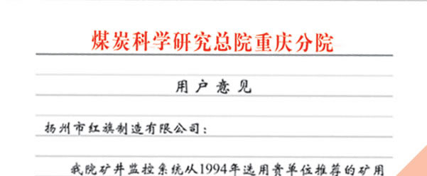 煤炭科學(xué)院總院重慶分院對(duì)我公司長(zhǎng)期以來產(chǎn)品各項(xiàng)性能符合要求、質(zhì)量穩(wěn)定、交貨及時(shí)、服務(wù)周到的贊譽(yù)