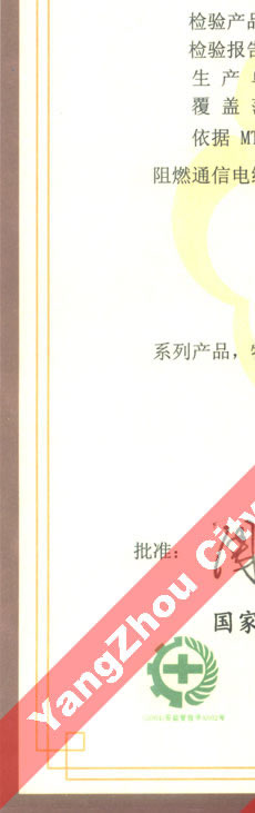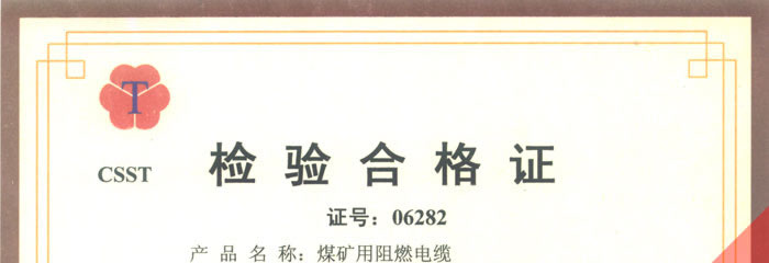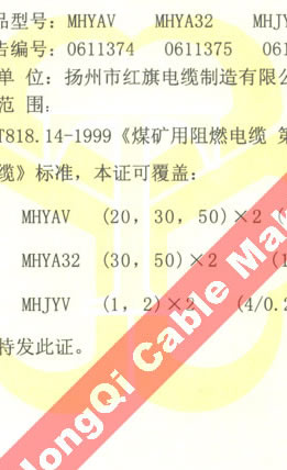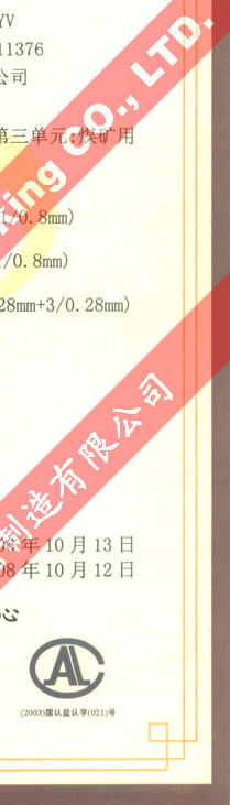 國家采煤機械質(zhì)量監(jiān)督檢驗中心檢驗合格證--煤礦用阻燃電纜(MHYAV,MHYA32,MHJYV)