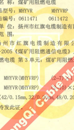 國(guó)家采煤機(jī)械質(zhì)量監(jiān)督檢驗(yàn)中心檢驗(yàn)合格證--煤礦用阻燃電纜(MHYVR,MHYVRP)