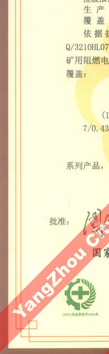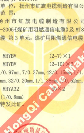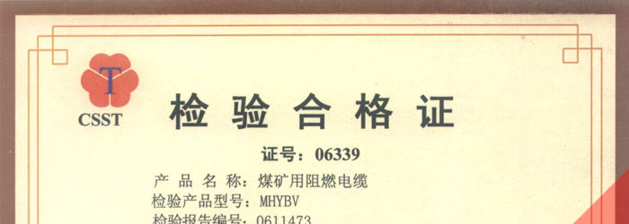 國家采煤機械質量監(jiān)督檢驗中心檢驗合格證--煤礦用阻燃電纜(MHYBV)