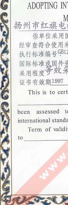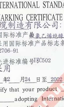 國家技術監(jiān)督局采用國際標準證書(聚氯乙烯絕緣和護套電力電纜)