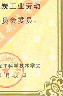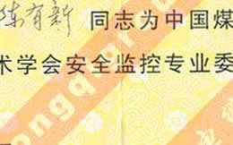 聘請董事長陳有新為中國煤碳工業(yè)勞動保護(hù)科學(xué)技術(shù)學(xué)會安全監(jiān)控專業(yè)委員會委員證書