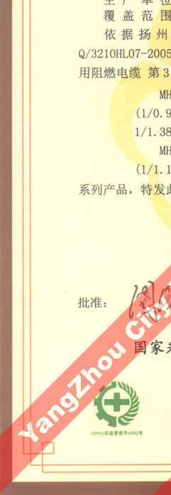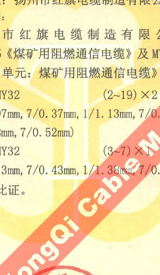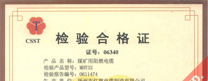 國(guó)家采煤機(jī)械質(zhì)量監(jiān)督檢驗(yàn)中心檢驗(yàn)合格證--煤礦用阻燃電纜(MHY32)