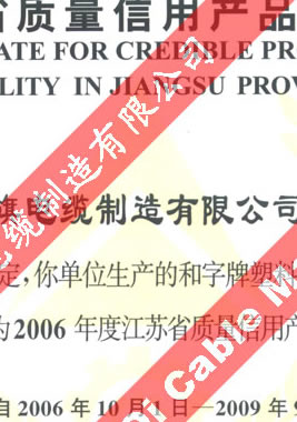 江蘇省質(zhì)量信用產(chǎn)品證書