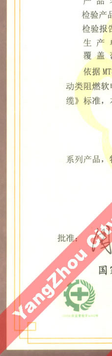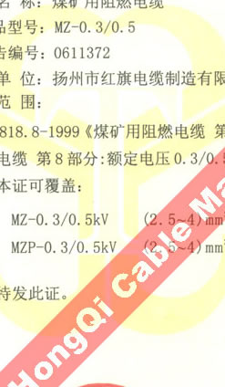 國家采煤機械質(zhì)量監(jiān)督檢驗中心檢驗合格證--煤礦用阻燃電纜(MZ-0.3/0.5)