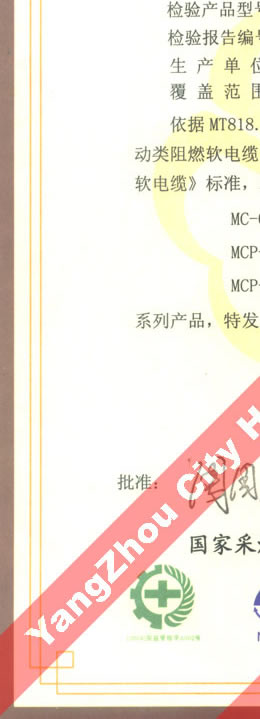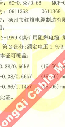 國家采煤機械質(zhì)量監(jiān)督檢驗中心檢驗合格證--煤礦用阻燃電纜(MC-0.38/0.66,MC-0.66/1.14)