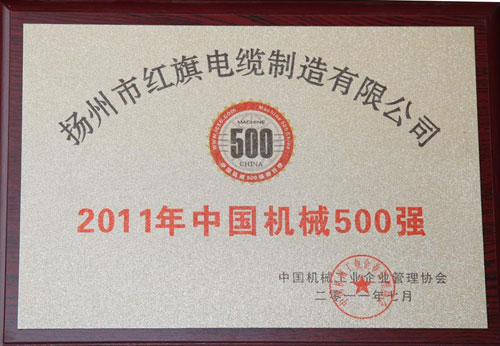 揚州市紅旗電纜制造有限公司榮耀躋身國家機械行業(yè)500強