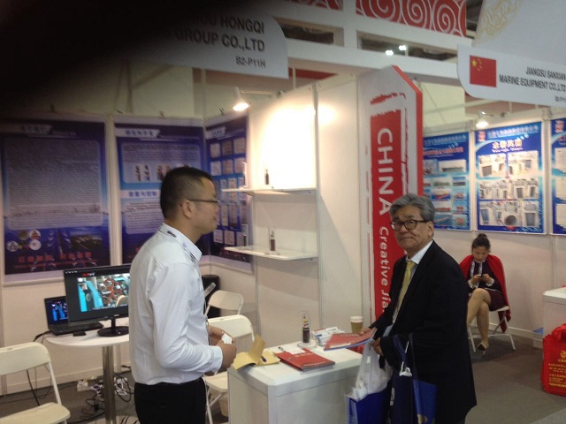 公司的展臺上“和字”牌系列船用(船舶)電纜、海洋工程電纜吸引了來自許多不同國家客商的濃厚興趣,他們紛紛駐足詢盤,感慨地說ship cables Made in China,有的則表示了意向的采購計劃,有的與公司現(xiàn)場工作人員進行了合影留念。